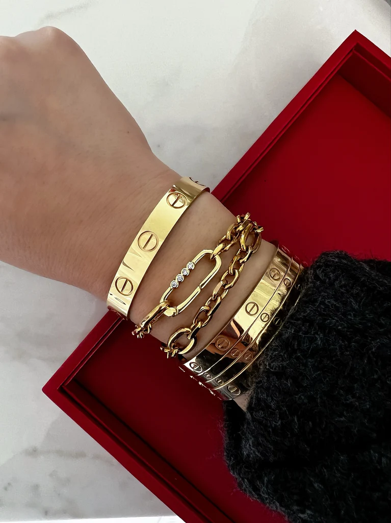 HRH Collection doesn’t have your typical “sale,” meaning no discounted prices. However, over the holidays she will put up “free” items on her site. When the holiday is over, those items will be marked up at the original price. This year, HRH had her J’Adore necklaces up for free with a purchase, so I just had to get my hands on one of these cute designs. I purchased the free J’Adore Metallic Candy Heart necklace in gold, the Jolie Link Bracelet and the large 70s Everyday Hoops.